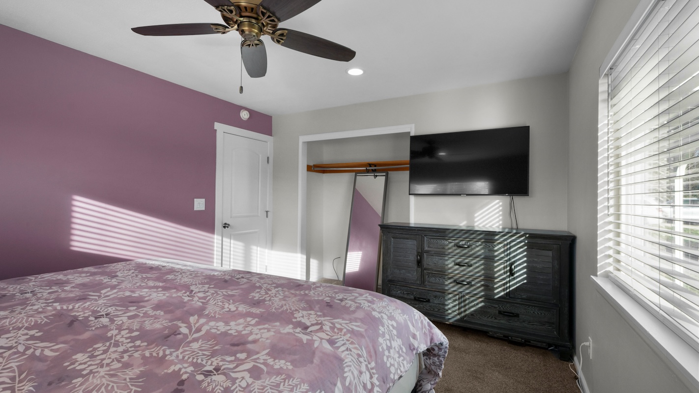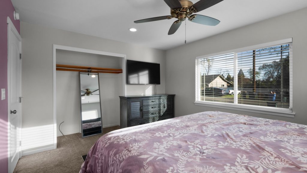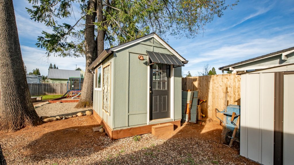 The primary bedroom offers a walk-in closet and private bath, creating a comfortable retreat at the end of the day. Two additional bedrooms provide flexibility for guests, a home office, hobbies, or changing household needs. Outside, the landscaped backyard offers a welcoming setting for relaxing, gardening, or enjoying the peaceful surroundings. A detached studio shed adds valuable bonus space for creative work, storage, or a private hobby room. Large RV and trailer parking further expands the property’s functionality, making it a strong fit for buyers who need extra room for recreational vehicles, equipment, or outdoor toys.